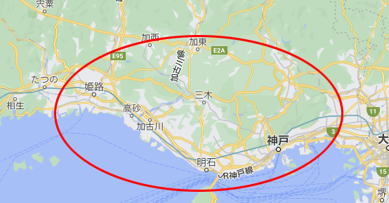 姫路エリア、加古川エリア、神戸エリア、西脇エリア